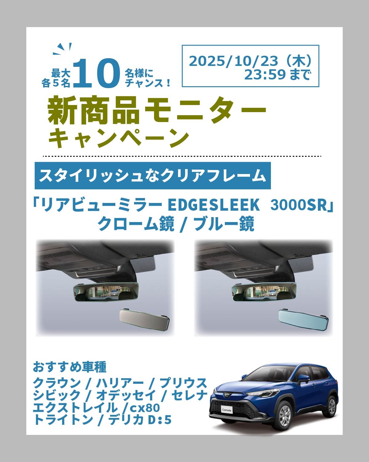 リアビューミラーEDGE SLEEK 3000SR クローム鏡(DZ610)とブルー鏡(DZ611)を2025年9月30日に発売いたしました。