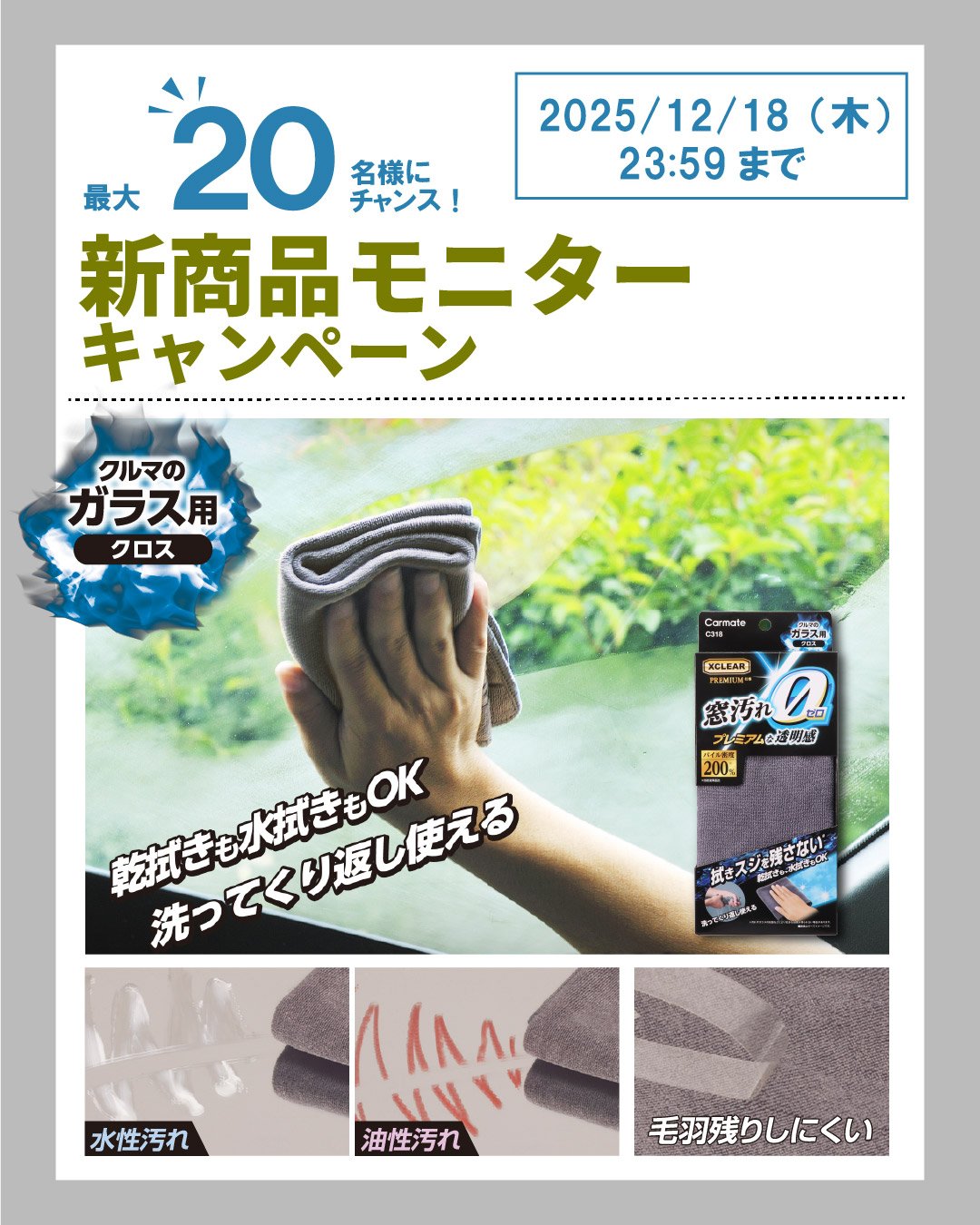 [新製品][モニターキャンペーン] 拭きスジを残さないプレミアムな窓ふきクロス
