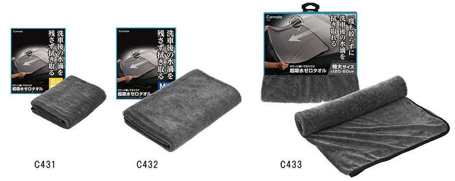 吸収力に優れた"ツイストループ"構造のマイクロファイバークロスを採用。洗車時に実用的なサイズ展開・乾きやすい片面メッシュ仕様の「超吸水ゼロタオル」シリーズ(3サイズ、5品番)を新発売。