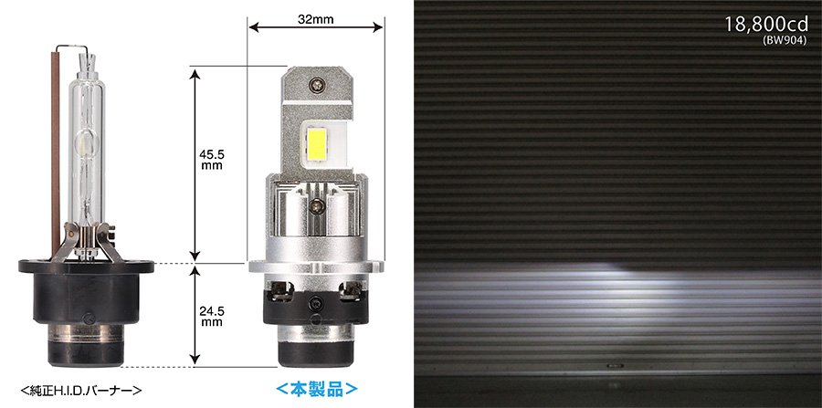 純正H.I.D. 15,500cd/本製品(BW904) 18,800cd
