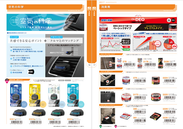 2017年春~夏までの新製品が盛りだくさんに掲載された、最新のカタログ配信を開始いたしました。カメラ、芳香剤、消臭剤、ルームミラー、ドリンクホルダー、ゴミ箱、スマートフォンホルダー、洗車用品、フロントガラス・ボディの撥水剤、トランスミッター、シフトノブ・ペダル、ダミーセキュリティ、キャリア、ライト・バルブなど、多岐に展開されるカー用品を一挙にご覧いただけます。ぜひこの機会に、様々なラインナップをお楽しみください。